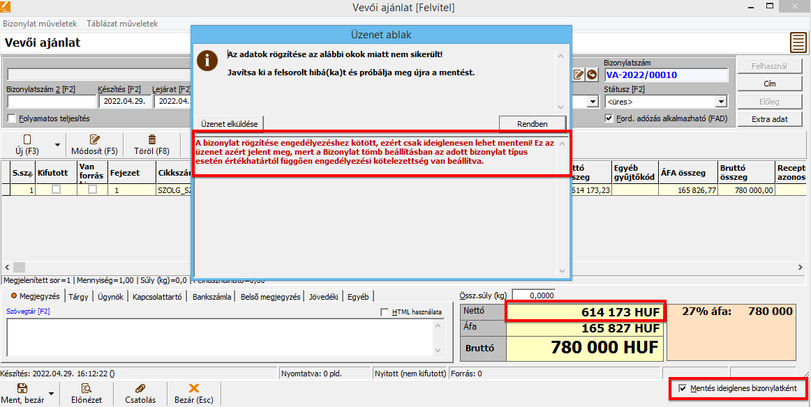 - Ha lemásoltunk egy engedélyezett bizonylatot, akkor az engedélyező adatokat is másolta, így nem engedte módosítani a bizonylat sorait egy olyan felhasználó esetén, aki nem az engedélyező felhasználó volt.