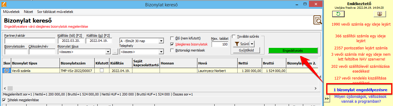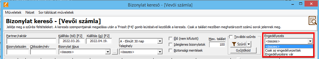- Bizonylatok engedélyezése