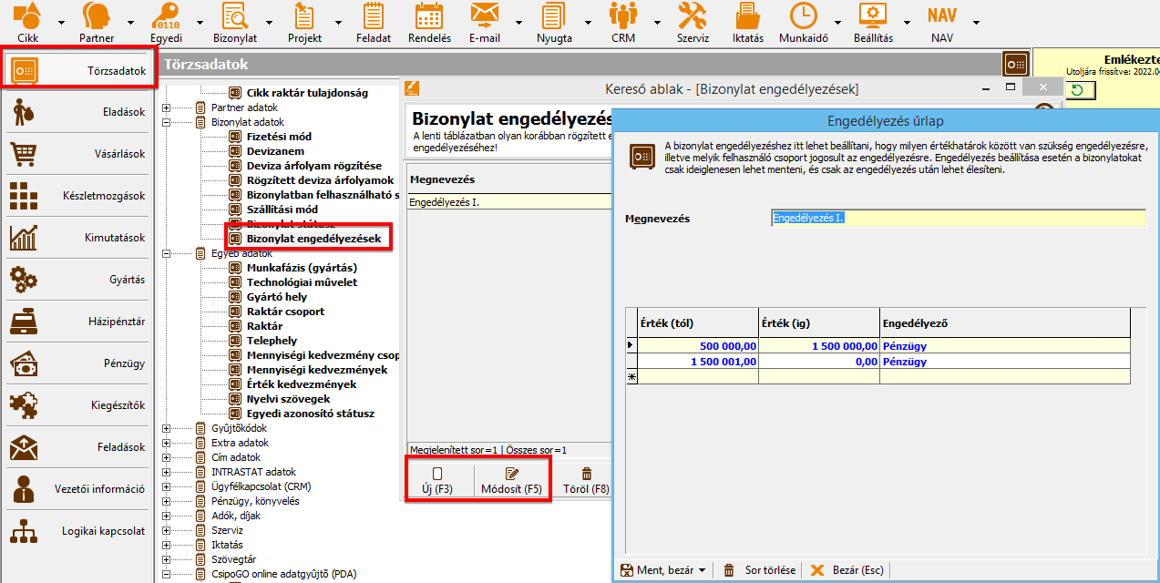 - Egy engedélyezett bizonylatot most már nem csak az engedélyező felhasználó módosíthatja, hanem bárki, aki ugyanabba az engedélyező csoportba tartozik, mint aki ténylegesen engedélyezte a bizonylatot.