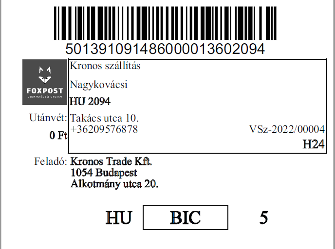 - Foxpost csomag címke