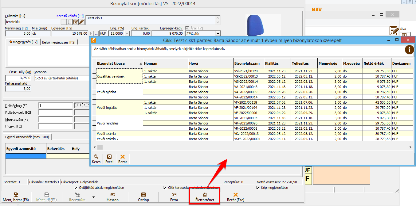 A csomagot törölve (F8), újra utalható az adott számla (illetve a csomagban szereplő összes számla). - Bizonylat sor szerkesztő ablakban az [Élettörténet] gomb az élettörténet joggal működik csak.