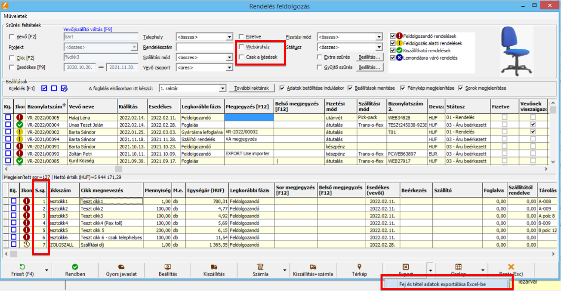 - Rendelés feldolgozás ablakban változások: